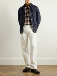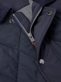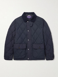 Ralph Lauren Purple Label's 'Carleton' jacket draws from functional barn coats. Padded with insulating down, it's made from quilted, water-resistant shell and trimmed with soft corduroy along the collar. Practical details include a throat latch and snap-fastening double vent. Size & Fit - Fits true to size. Take your normal size - Designed for a relaxed fit - Sized for layering - Padded, non-stretchy fabric - Model is shown wearing a M - Model measures: chest 38"/ 96cm, height 6'2"/ 188cm Details & Care - Navy shell and corduroy, brown suede - Snap and two-way zip fastening - 100% polyester; trim1: 85% cotton, 15% cashmere; trim2: 100% leather (Lamb); filling: 90% down (Duck), 10% polyester - Dry clean - Designer colour: Classic Chairman Navy