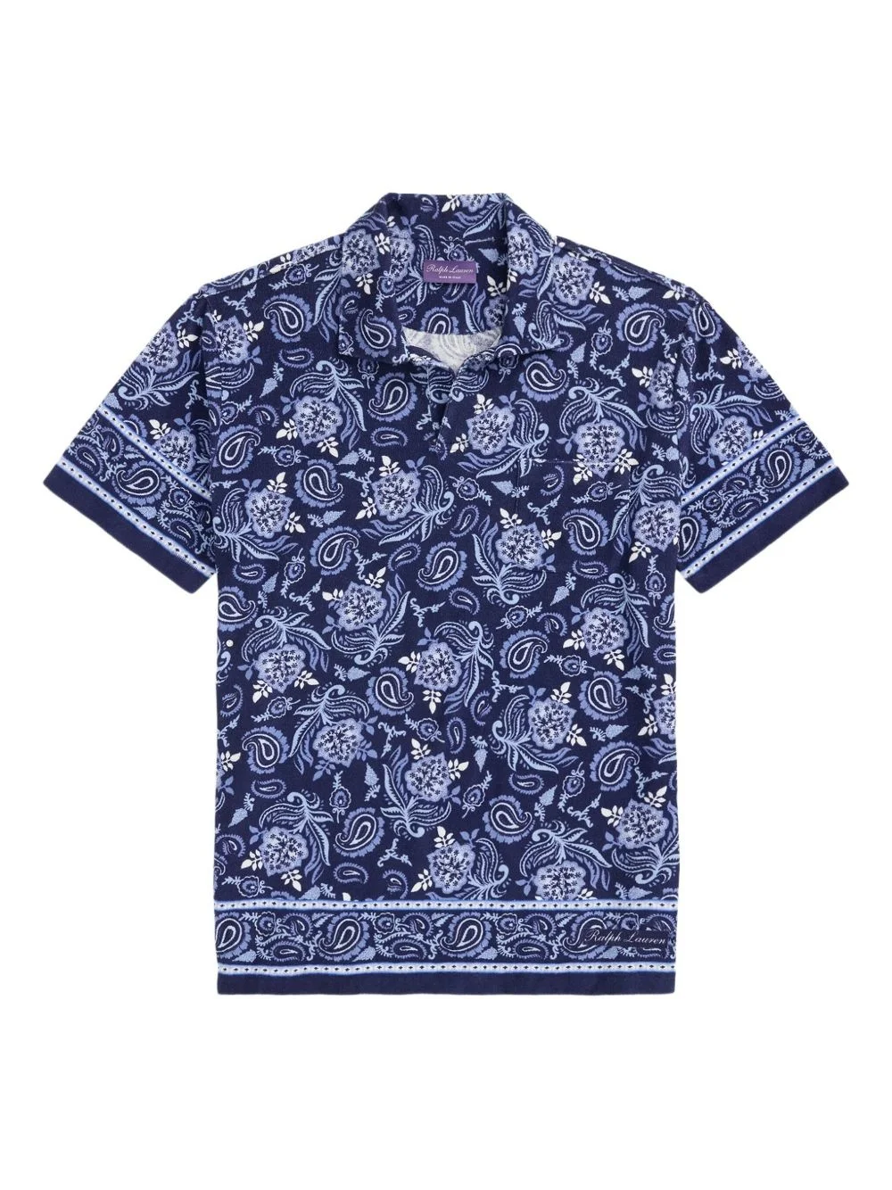 Riviera T-shirt Highlights - Navy blue - Chest patch pocket - Split neck - Paisley print Made in Italy Composition Cotton 100%, Mother of Pearl 100%