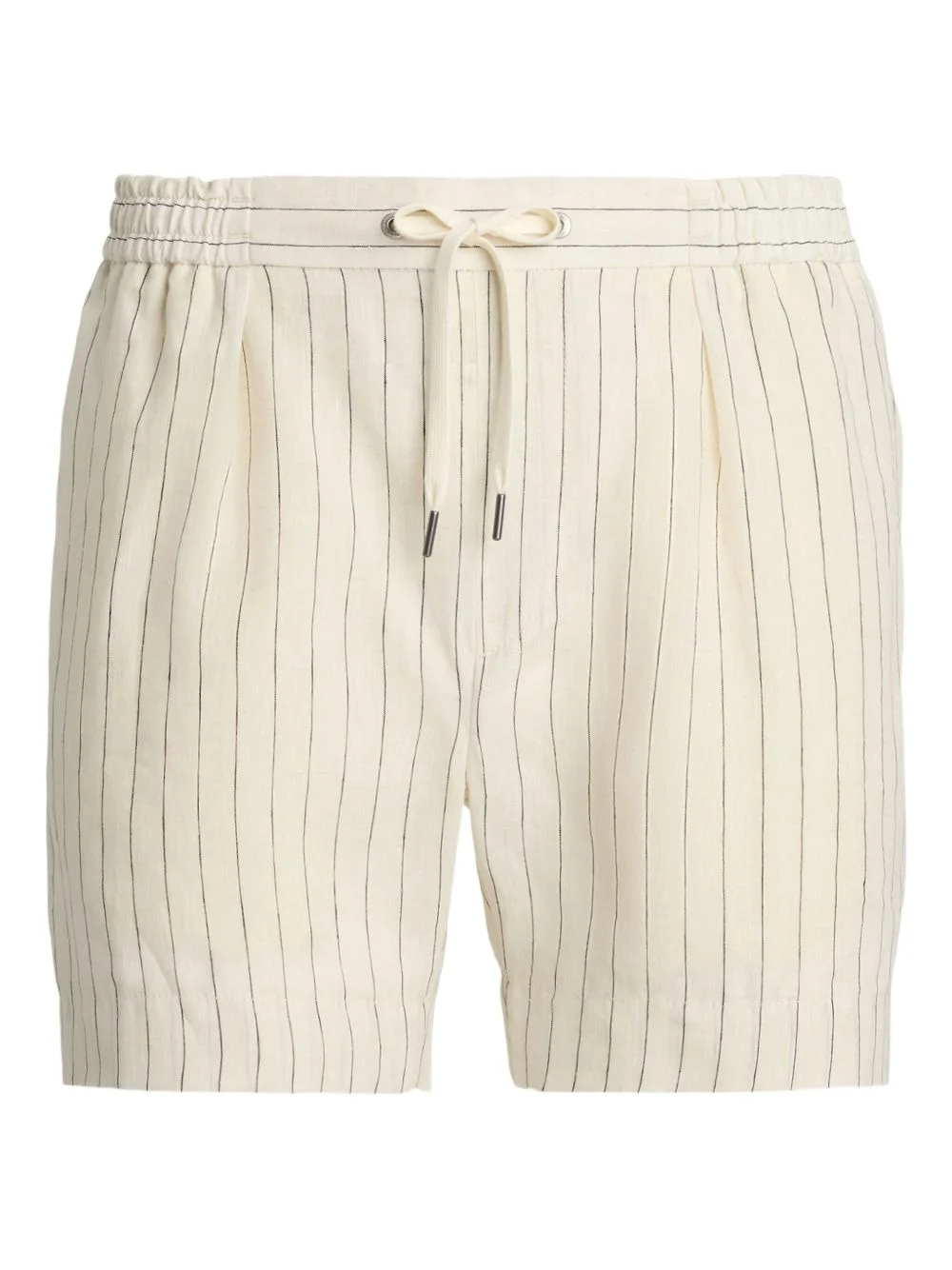 pinstripe drawstring shorts Highlights - Summer sand - Pinstripe pattern - Drawstring fastening - Elasticated waistband - Side pockets - Button fly Imported Composition Linen/Flax 100% Washing instructions Read Manufacturer Guidelines