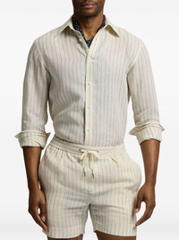 pinstripe linen shirt Highlights - Summer sand - Pinstripe pattern - Long sleeves - Button fastening - Spread collar - Straight hem Made in Italy Composition Linen/Flax 100% Washing instructions Read Manufacturer Guidelines