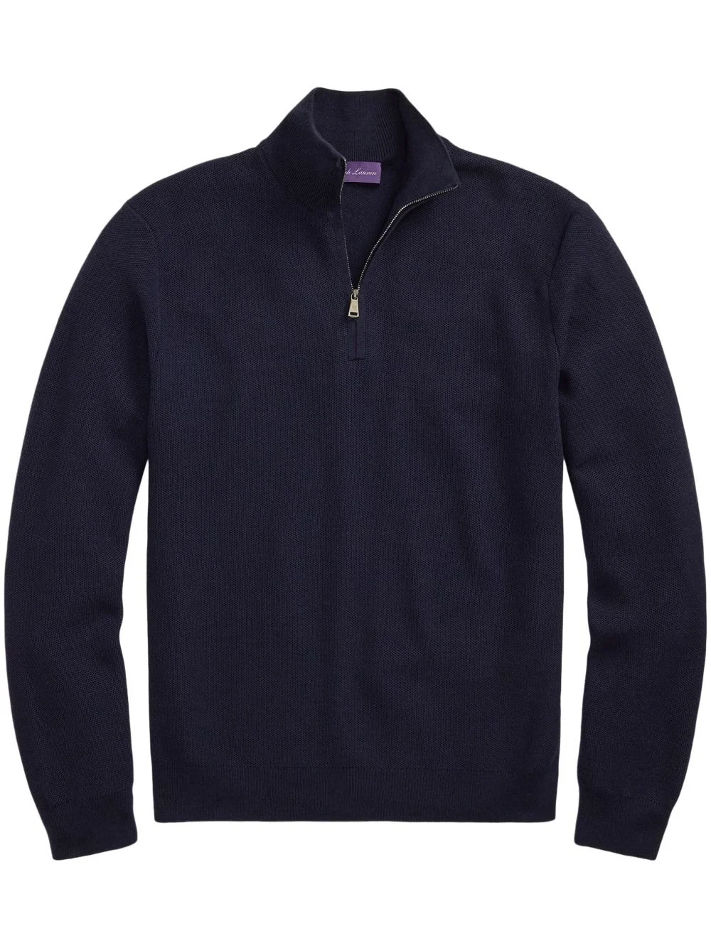 pique-weave wool sweater Highlights - Navy blue - Half front zip fastening - Branded zip puller - Long sleeves - Ribbed cuffs and hem Imported Composition Wool 100% Washing instructions Read Manufacturer Guidelines