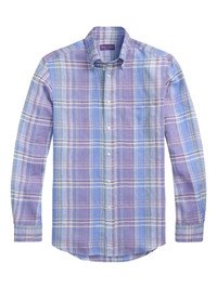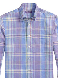plaid-pattern shirt Highlights - Cornflower blue - Front button fastening - Buttoned cuffs - Long sleeves - Curved hem Made in Italy Composition Linen/Flax 100%