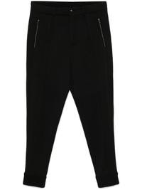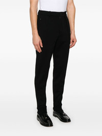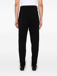 pleated trousers Highlights - Black - Jersey texture - Pleat detailing - Concealed fly and button fastening - Mid-rise - Two side zip-fastening pockets - Raised seam detail - Dart detailing - Two rear button-fastening pockets - Ribbed ankles - Tapered leg Made in Italy Composition Outer: Wool 39%, Cotton 39%, Polyester 22% Lining: Cotton 100%, Wool 93%, Nylon 5%, Elastane 2% SIZE & FIT Model measurements Height 6 ft 2 in(1.87 m) Bust/Chest 37.79 in(96 cm) Hips 37.79 in(96 cm) Waist 30.31 in(77 cm) FittingInformation Designed for a slim tapered leg, offering a close fit that sits just away from the leg with a closer fit towards the ankle Made from a midweight stretch fabric, this piece offers elasticity and flexibility when worn