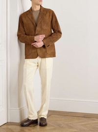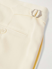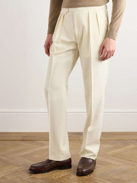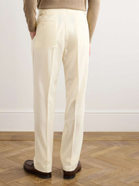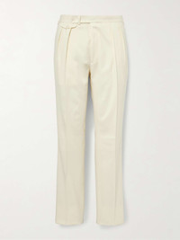 Ralph Lauren Purple Label's 'Gregory' trousers have been tailored in Italy from worsted wool-twill that's soft but also robust. Cut for a straight profile, they have adjustable waist tabs and unfinished hems, so you can have them altered to fit perfectly. Size & Fit - Fits true to size. Take your normal size - Tapered leg, high-rise style - Adjustable tabs at the waist and unfinished hems; alter to fit - Mid-weight, non-stretchy fabric - Model is shown wearing a 32 - Model measures: waist size 32, height 6'2"/ 188cm Details & Care - Cream wool-twill - Adjustable waist tabs, double pleats, two front slash pockets, front buttoned flap pocket, two back buttoned welt pockets, unfinished hems - Hook, button and zip fastening - 100% wool; buttons: 100% horn (Buffalo) - Dry clean