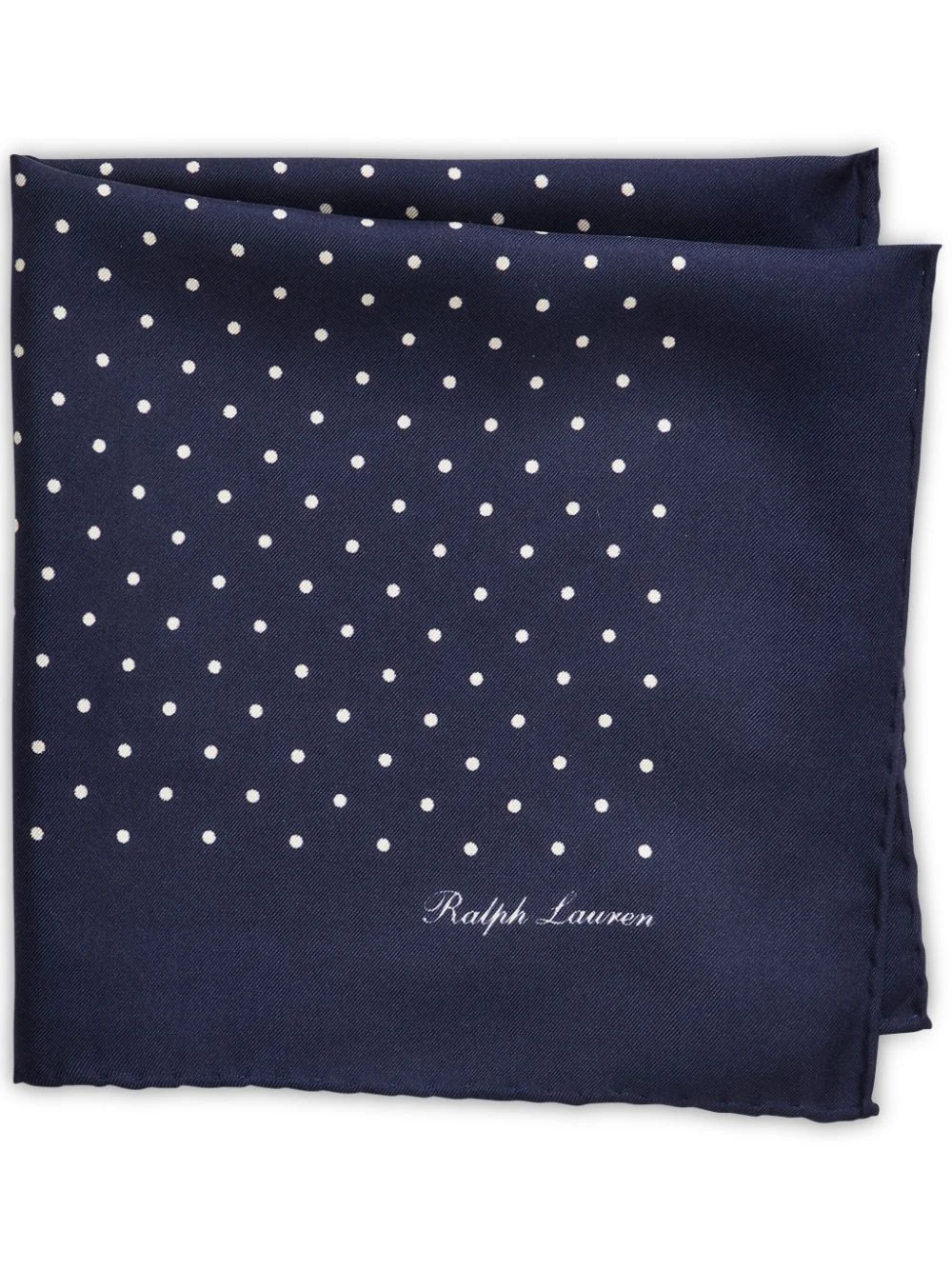 polka dot silk pocket square Highlights - Navy blue/white - Mulberry silk - Polka dot print - Logo print to the side - Square shape Made in Italy Composition Mulberry Silk 100% Washing instructions Read Manufacturer Guidelines