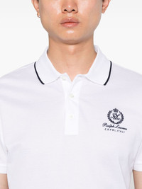 cotton polo shirt Highlights - White - Front button placket - Short sleeves - Contrasting border - Straight hem Made in Italy Composition Coconut 100% SIZE & FIT Model measurements Height 6 ft 2 in(1.88 m) Bust/Chest 37.4 in(95 cm) Hips 37.79 in(96 cm) Waist 30.31 in(77 cm) FittingInformation Designed for a relaxed fit, this polo shirt offers comfort and movement Made from a midweight non-stretch fabric, this piece offers minimal elasticity when worn