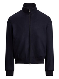 zipped bomber jacket Highlights - Navy blue - Zip front fastening - Ribbed cuffs - Bomber style Imported Composition Polyester 55%, Cotton 35%, Elastane 10% Washing instructions Read Manufacturer Guidelines