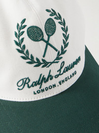 Ralph Lauren Purple Label's six-panel baseball cap channels refined Wimbledon style. It's been made in Italy from cotton-blend twill and is embroidered with a custom-developed laurel wreath and tennis racquet crest at the front. Details & Care - Cream and green cotton-blend twill - 97% cotton, 3% elastane - Dry clean - Designer colour: Classic Cream
