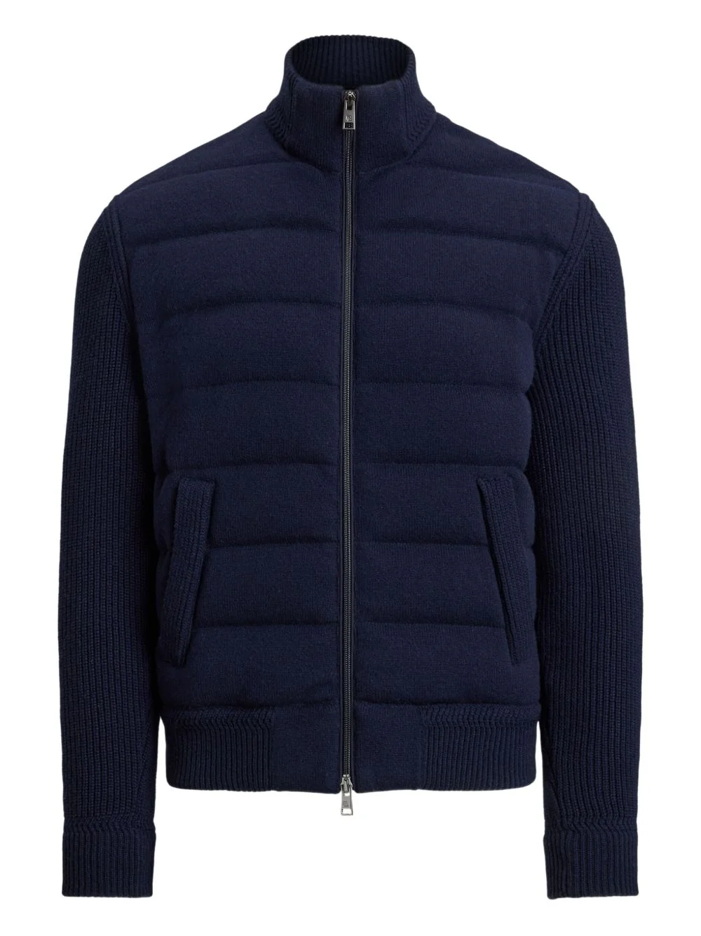 ribbed-sleeves quilted jacket Highlights - Navy blue - Quilted construction - Full zip fastening - Ribbed knit sleeves - Ribbed knit hem - Welt pockets Made in Italy Composition Outer: Wool 100%, Cashmere 100% Lining: Nylon 100%, Polyester 100% Washing instructions Read Manufacturer Guidelines
