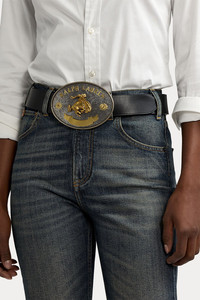 DETAILS AND INSIGHT Ralph Lauren rodeo-buckle wide belt in black. 100% Leather Made In Italy Style 408922480001-BLK