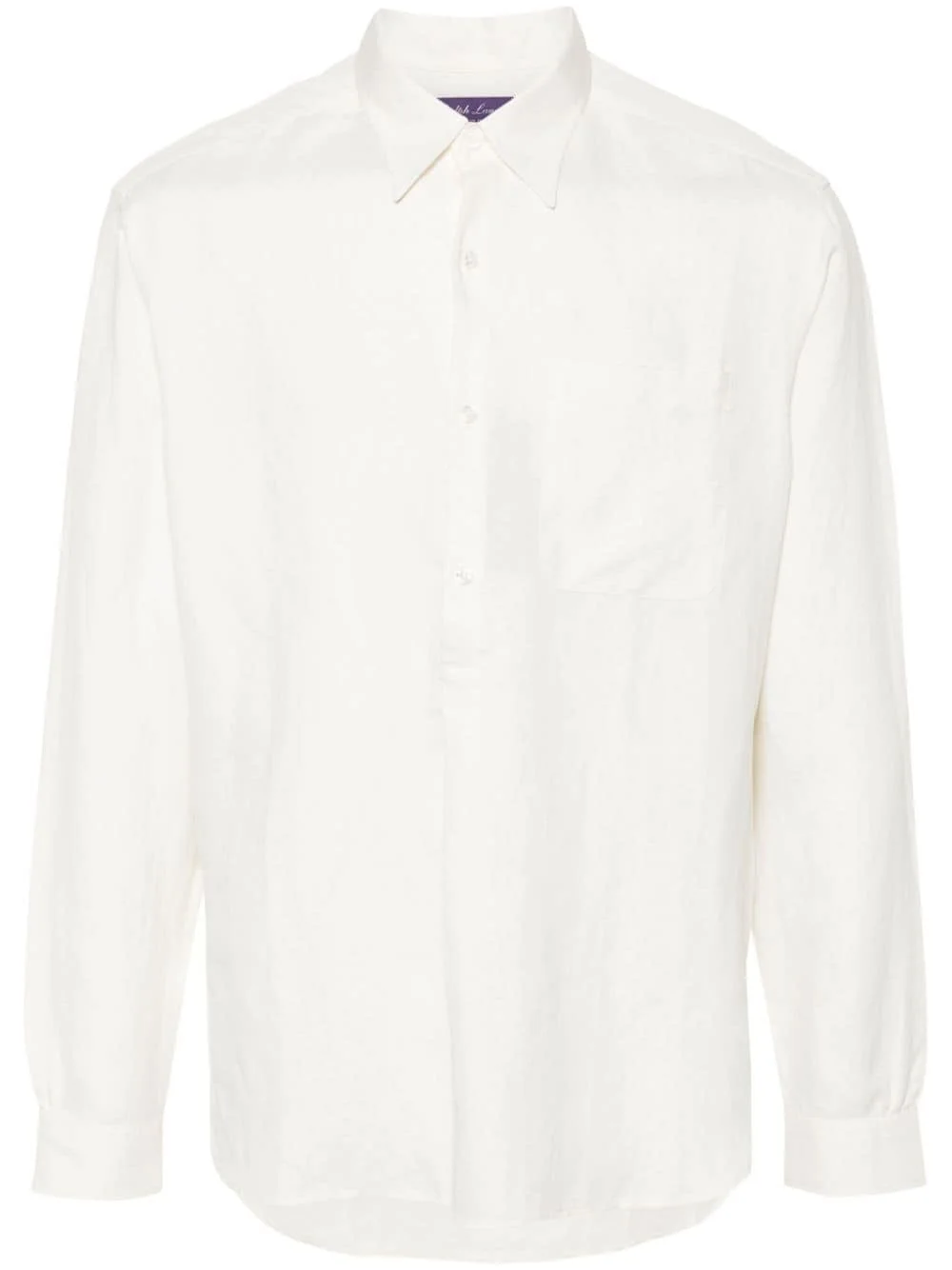 poplin silk-blend shirt Highlights - Cream white - Silk-linen blend - Poplin texture - Logo-engraved buttons - Gathered detailing - Straight-point collar - Long sleeves - Buttoned cuffs - Chest patch pocket - Curved hem - Unlined - Short front button fastening Made in Italy Composition Silk 51%, Linen/Flax 49% SIZE & FIT Model measurements Height 6 ft 2 in(1.87 m) Bust/Chest 37.79 in(96 cm) Hips 37.79 in(96 cm) Waist 30.31 in(77 cm) FittingInformation Designed for a regular fit, allowing for a comfortably loose fit throughout the body Made from a midweight non-stretch fabric This piece fits true to size – take your usual size