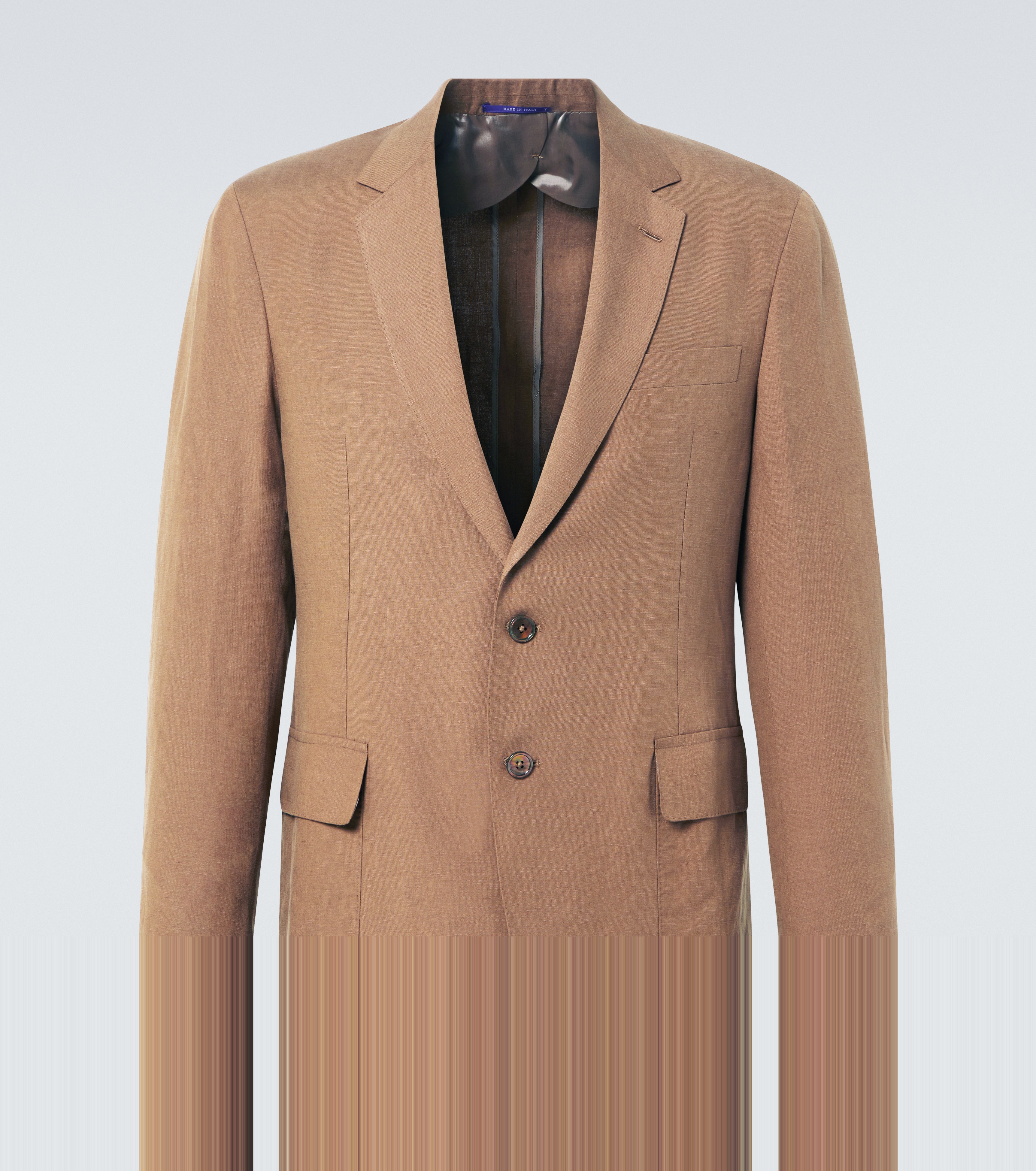 Product Details - Material: 51% silk, 49% linen - Care instructions: dry clean - Made in Italy - Designer color name: Espresso - Pockets: flap pockets - Closure: single-breasted (two buttons) - Contains non-textile parts of animal origin - Lining: 100% cupro - Item number: P00985172 Size & Fit - True to size - Shoulder pad inserts - Slim fit - Non-stretchy fabric - Falls below the hip - Height of model is 192cm-75.5" and wears a size UK 40