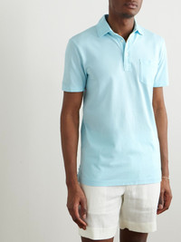 Slim-Fit Washed Cotton-Piqué Polo Shirt Blue