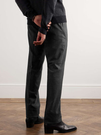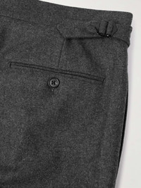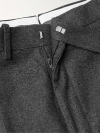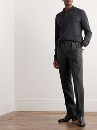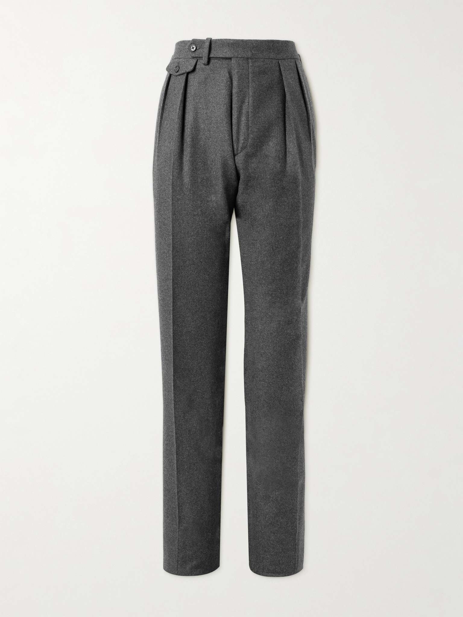 Ralph Lauren Purple Label's clothes speak luxury in a quiet, knowing way. These vintage-inspired trousers are made from pure wool and pleated through the front. Adjust the waist tabs and tailor the unfinished hems to create the perfect fit. Size & Fit - Fits true to size. Take your normal size - Regular-straight leg, low-crotch trousers - Mid-weight, non-stretchy fabric - Model is shown wearing a 30 - Model measures: waist size 30, height 6'1"/ 185cm Details & Care - Grey wool - Adjustable waist tabs, front and back pleats, two front on-seam pockets, two back buttoned welt pockets, unfinished hems - Button, hook and zip fastening - 100% wool; lining: 100% viscose - Dry clean