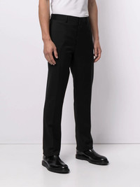 straight-leg tailored trousers Highlights - Black - Wool - Tailored cut - Concealed front fastening - Belt loops - Two side slit pockets - Two rear welt pockets - Straight leg Made in Italy Composition Wool 100% SIZE & FIT Model measurements Height 6 ft 2 in(1.87 m) Bust/Chest 35.43 in(90 cm) Hips 35.43 in(90 cm) Waist 29.13 in(74 cm) FittingInformation This piece fits true to size. We recommend you get your regular size Regular fit Made with a mid-weight non-stretch fabric Washing instructions Dry Clean Only