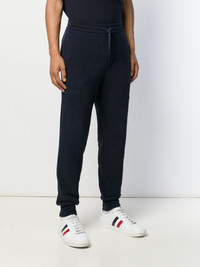 straight leg track pants Navy blue cotton blend straight leg track pants from Ralph Lauren Purple Label featuring an elasticated waistband with a drawstring fastening, a straight leg, elasticated cuffs and a rear welt pocket. Made in Italy Composition Cotton 73%, Polyester 25%, Spandex/Elastane 2% SIZE & FIT Model measurements Height 6 ft 2 in(1.87 m) Bust/Chest 38.18 in(97 cm) Hips 36.61 in(93 cm) Waist 29.13 in(74 cm) FittingInformation This piece fits true to size. We recommend you get your regular size Cut for a relaxed fit Washing instructions Hand Wash