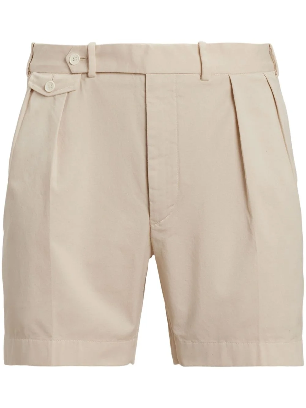 stretch-cotton chino shorts Highlights - Beige - Side button and zip fastening - Two side slash pockets - Two rear button-fastening pockets - Pleat detailing Made in Italy Composition Outer: Cotton 97%, Elastane 3% Lining: Cotton 100%