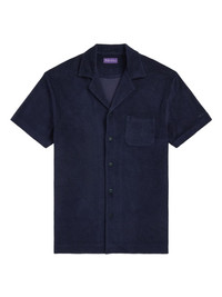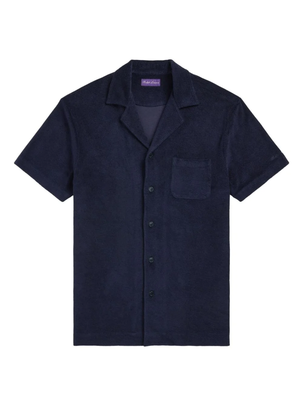 terry-cloth shirt Highlights - Navy blue - Front button fastening - Chest patch pocket - Embroidered logo at the sleeve - Notched collar Imported Composition Cotton 64%, Modal 36%