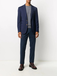 WOOL SERGE-GFCBS-SPORTCOAT blue wool notched lapels front button fastening long sleeves buttoned cuffs two front flap pockets Made in Italy Composition Body: Wool 100% SIZE & FIT Model measurements Height 6 ft 2 in(1.87 m) Bust/Chest 38.18 in(97 cm) Hips 36.61 in(93 cm) Waist 29.13 in(74 cm) FittingInformation This piece fits true to size. We recommend you get your regular size Cut for a slim fit Made with a mid-weight non-stretch fabric Washing instructions Dry Clean Only