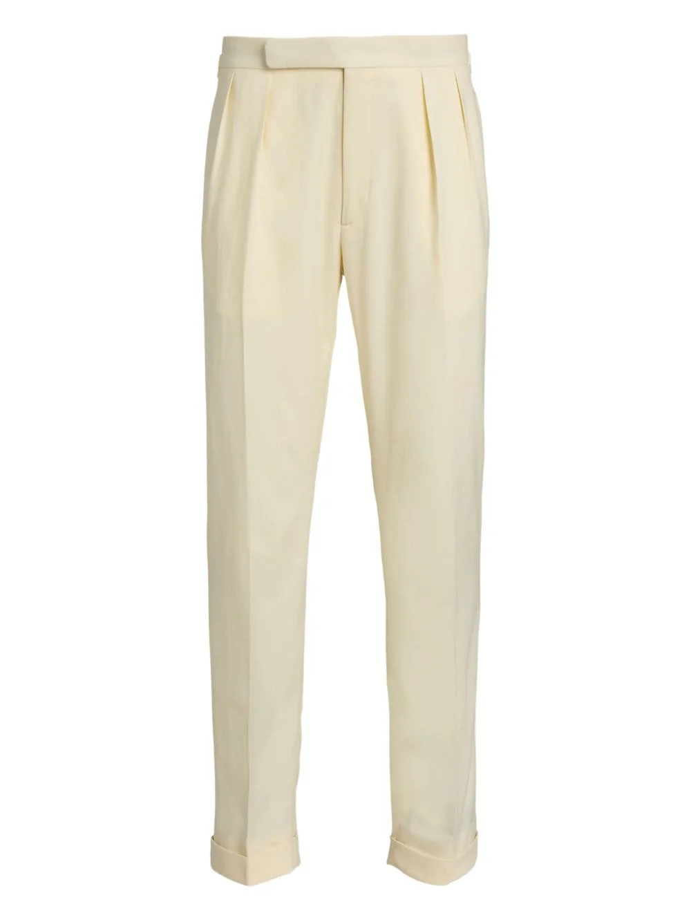 wool trousers Highlights - Cream - Cuffed hem - Belt loops - Side pockets - Concealed front fastening Made in Italy Composition Lining: Viscose 100% Outer: Wool 100% Washing instructions Dry Clean Only
