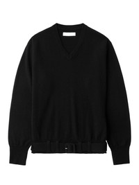 belted sweater Highlights - Black - Merino wool blend - Knitted construction - Detachable waist belt - Ribbed v-neck - Long sleeves - Ribbed cuffs and hem - Belt loops - Straight hem Made in Italy Composition Virgin Wool 70%, Cashmere 30%