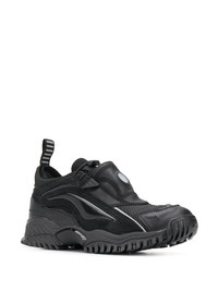 contrast panel toggle detail sneakers Black leather, rubber and metallic fibre-blend contrast panel toggle detail sneakers from Random Identities featuring a textured style, contrasting panels, a round toe, a ridged rubber sole, a flat heel, a pull tab at the rear and a toggle fastening. Imported Composition Outer: Calf Leather 100%, Nylon 100% Lining: Polyester 100% Sole: Polyethylene vinyl acetate (PEVA) 100%, Thermoplastic Polyurethane (TPU) 100% SIZE & FIT Measurement HEEL 1.45 in(3.7 cm) Sole height 0.78 in(2 cm)