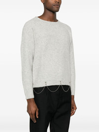crystal-embellished wool-blend jumper Highlights - Light grey - Wool blend - Knitted construction - Crystal embellishment - Chain-link detailing - Crew neck - Long sleeves - Straight hem Imported Composition Wool 54%, Yak 22%, Nylon 19%, Elastane 5% SIZE & FIT Model measurements Height 6 ft 2 in(1.88 m) Bust/Chest 36.61 in(93 cm) Hips 35.82 in(91 cm) Waist 27.95 in(71 cm) FittingInformation Designed for a relaxed fit, this piece allows for comfort and movement when worn Made with a midweight knit, this piece offers some stretch This piece fits true to size – take your usual size Washing instructions Machine Wash