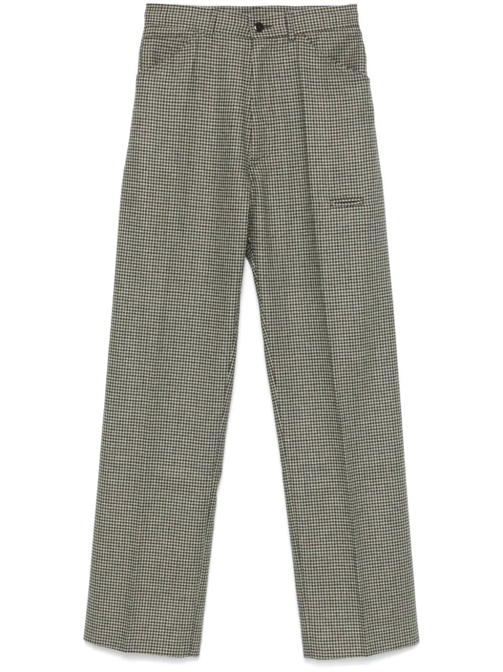 dogtooth trousers Highlights - Beige/multicolour - Wool blend - Dogtooth pattern - Front button and zip fastening - Belt loops - Two side inset pockets - Two rear button-fastening pockets - Straight leg Imported Composition Outer: Wool 60%, Polyester 35%, Polyamide 4%, Cotton 1% SIZE & FIT Model measurements Height 6 ft 2 in(1.88 m) Bust/Chest 36.61 in(93 cm) Hips 35.82 in(91 cm) Waist 27.95 in(71 cm) FittingInformation Designed for a straight-leg, allowing for an unrestricted and comfortable fit over the leg Made from a midweight non-stretch fabric