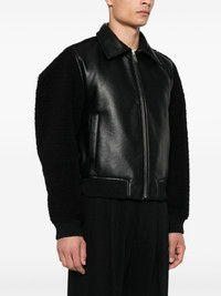 faux-leather jacket Highlights - Black - Faux leather - Faux shearling - Panelled design - Front zip fastening - Spread collar - Long raglan sleeves - Ribbed cuffs and hem - Two side welt pockets - Full lining - Straight hem Imported Composition Polyester 100%, Polyurethane 100% SIZE & FIT Model measurements Height 6 ft 1 in(1.85 m) Bust/Chest 35.82 in(91 cm) Hips 37.79 in(96 cm) Waist 29.13 in(74 cm) FittingInformation Designed for a relaxed fit, this piece allows for comfort and movement when worn The ribbed hem offers a close, comfortable fit Made from a midweight non-stretch fabric