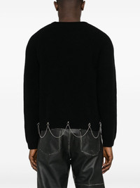 long-sleeved chain-embellished jumper Highlights - Black - Stretch-wool - Melange effect - Chain-link detailing - Long sleeves - Crew neck - Ribbed cuffs and hem Imported Composition Wool 58%, Nylon 22%, Acrylic 13%, Yak 7% SIZE & FIT Model measurements Height 6 ft 0 in(1.84 m) Bust/Chest 35.82 in(91 cm) Hips 37 in(94 cm) Waist 28.34 in(72 cm) Washing instructions Dry Clean Only