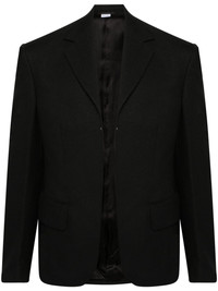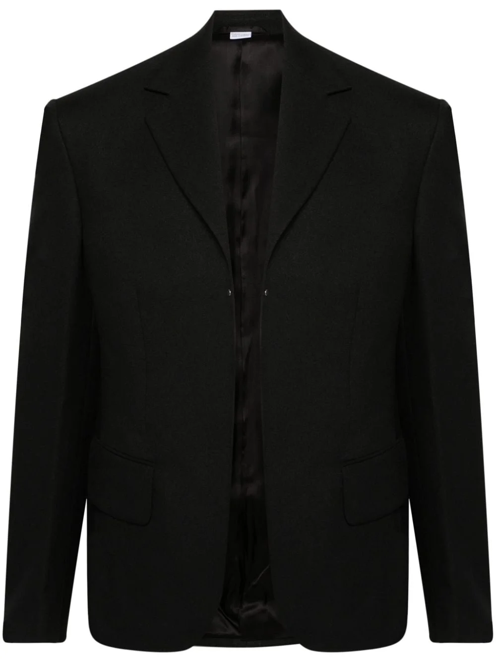 open-front twill blazer Highlights - Black - Cady texture - Twill weave - Notched lapels - Open front - Shoulder pads - Long sleeves - Chest welt pocket - Two ticket pockets - Italian rear vents - Straight hem - Partial lining Imported Composition Outer: Polyester 100% Lining: Viscose 100%, Acetate 58%, Cupro 42% SIZE & FIT Model measurements Height 6 ft 2 in(1.89 m) Bust/Chest 37.79 in(96 cm) Hips 37 in(94 cm) Waist 29.92 in(76 cm) FittingInformation Designed for a slim fit, offering a comfortable fit that sits just away from the body Made from a midweight non-stretch fabric This piece fits true to size – take your usual size Washing instructions Machine Wash
