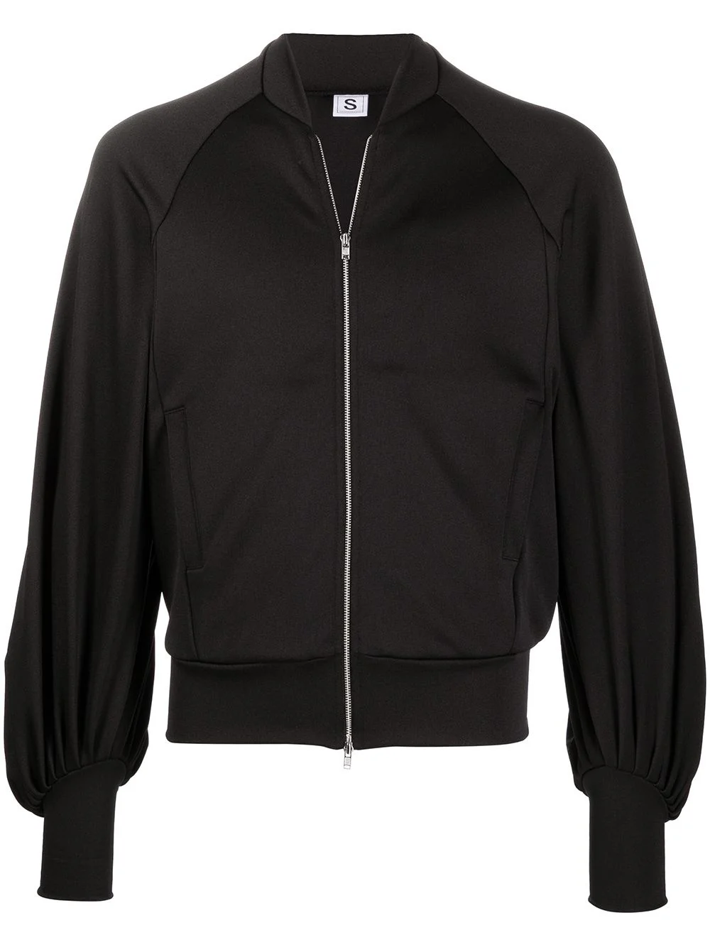 oversized-fit bomber jacket black ribbed band collar front zip fastening long raglan sleeves ribbed cuffs two side slit pockets ribbed hem Imported Composition Polyester 100% SIZE & FIT Model measurements Height 6 ft 1 in(1.85 m) Bust/Chest 37.79 in(96 cm) Hips 37.4 in(95 cm) Waist 30.7 in(78 cm) FittingInformation This piece fits true to size. We recommend you get your regular size Cut for a relaxed fit Made with a mid-weight fabric Washing instructions Machine Wash