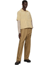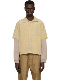 Semi-sheer crinkled nylon taffeta polo. · Spread collar · Concealed four-button placket · Embroidered logo patch at front · Concealed bungee-style drawstring at hem · Seam pockets Supplier color: Putty 100% polyamide. Made in Italy 251504M192001
