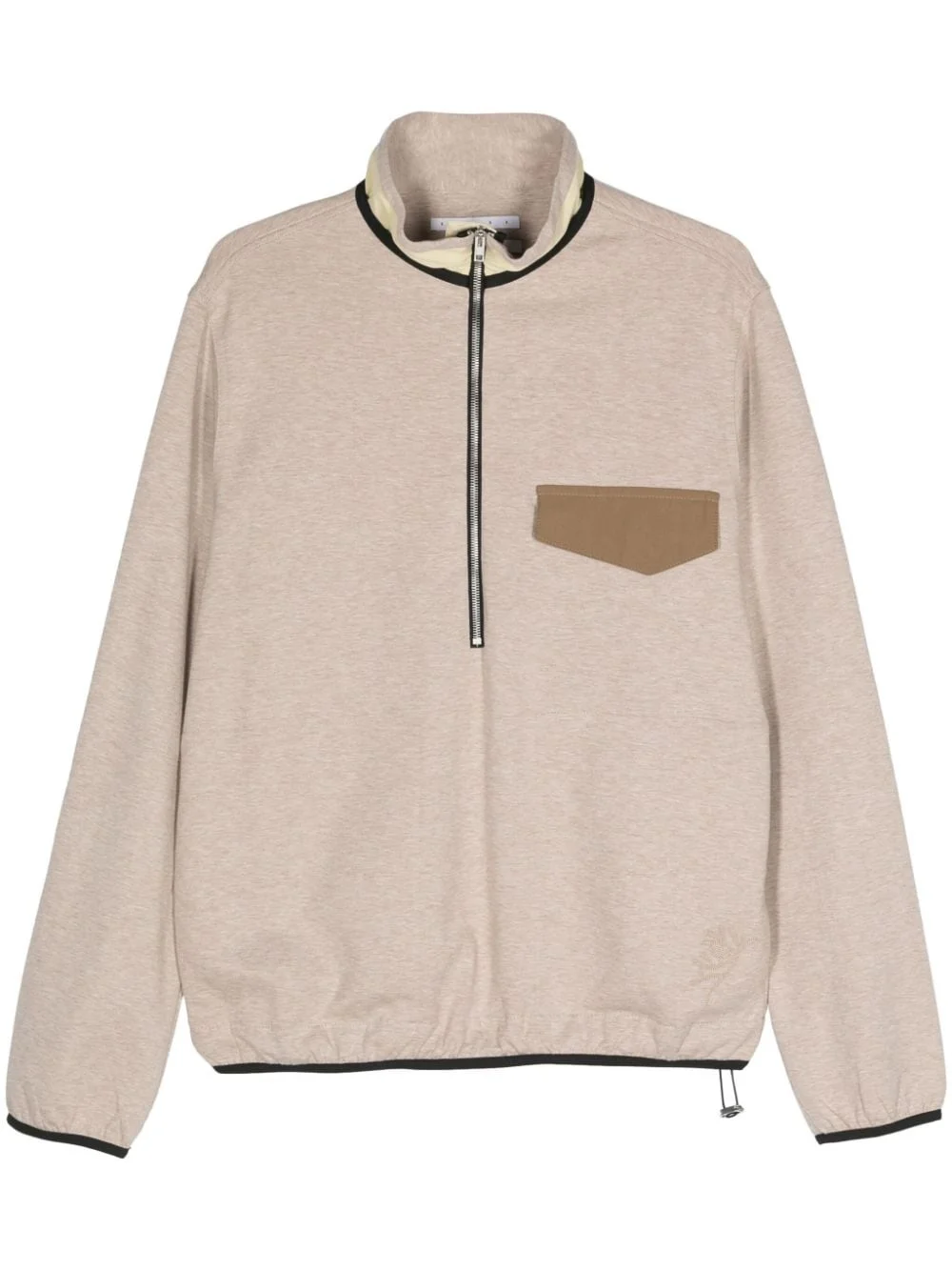 melange half-zip sweatshirt Highlights - Blush beige - Cotton blend - Melange effect - High neck - Chest flap pocket - Long sleeves - Elasticated cuffs - Two press-stud fastening side pockets - Drawstring hem - Half front zip fastening Made in Italy Composition Cotton 90%, Polyacrylonitrile 10%