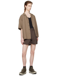 Recycled polyester-blend taffeta shorts. · Belt loops · Five-pocket styling · Zip-fly · Full mesh lining Supplier color: Chocolate brown Body: 50% recycled polyester, 50% polyester. Lining: 100% polyester. Made in Italy 241504M193001