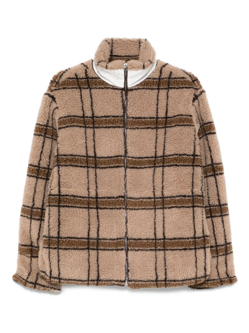 checked teddy jacket Highlights - Brown - Checked pattern - Zip front - High neck - Long sleeves Made in Italy Composition Outer: Polyester 63%, Wool 37% Lining: Viscose 53%, Cotton 47% Washing instructions Machine Wash