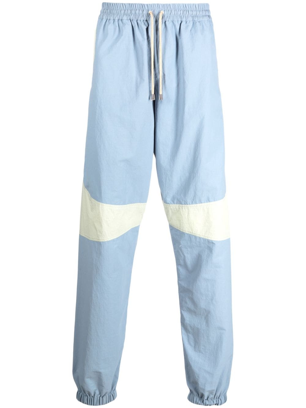 contrasting-panel drawstring track pant Highlights - Sky blue/white - Contrasting panel detail - Elasticated drawstring waistband - Wide leg - Two side slash pockets - Elasticated hem Made in Italy Composition Polyamide 100% SIZE & FIT Model measurements Height 6 ft 2 in(1.88 m) Bust/Chest 37.79 in(96 cm) Hips 35.82 in(91 cm) Waist 29.92 in(76 cm) FittingInformation Designed for a straight-leg, allowing for an unrestricted and comfortable fit over the leg The elasticated waist allows for a comfortable fit Made from a midweight non-stretch fabric This piece fits true to size – take your usual size