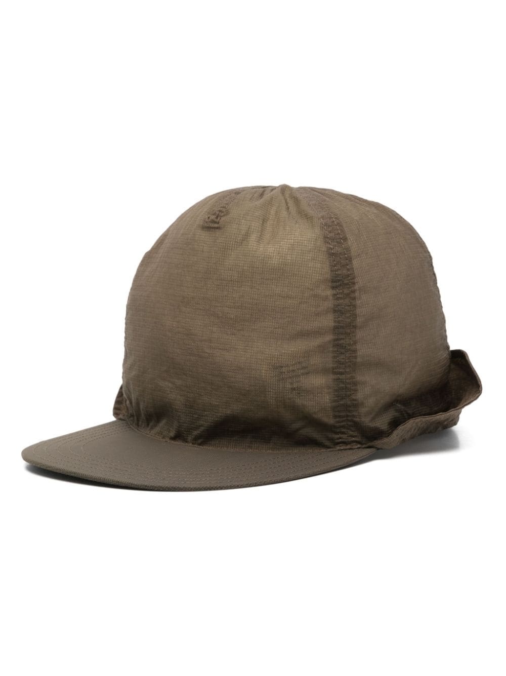 fine-checked semi-sheer hat Highlights - Khaki - Semi-sheer construction - Fine check pattern - Six-panel construction - Flat peak - Flexible brim - Rear toggle fastening - Unlined Made in Italy Composition Polyamide 100% SIZE & FIT Measurement BRIM 3.74 in(9.5 cm)