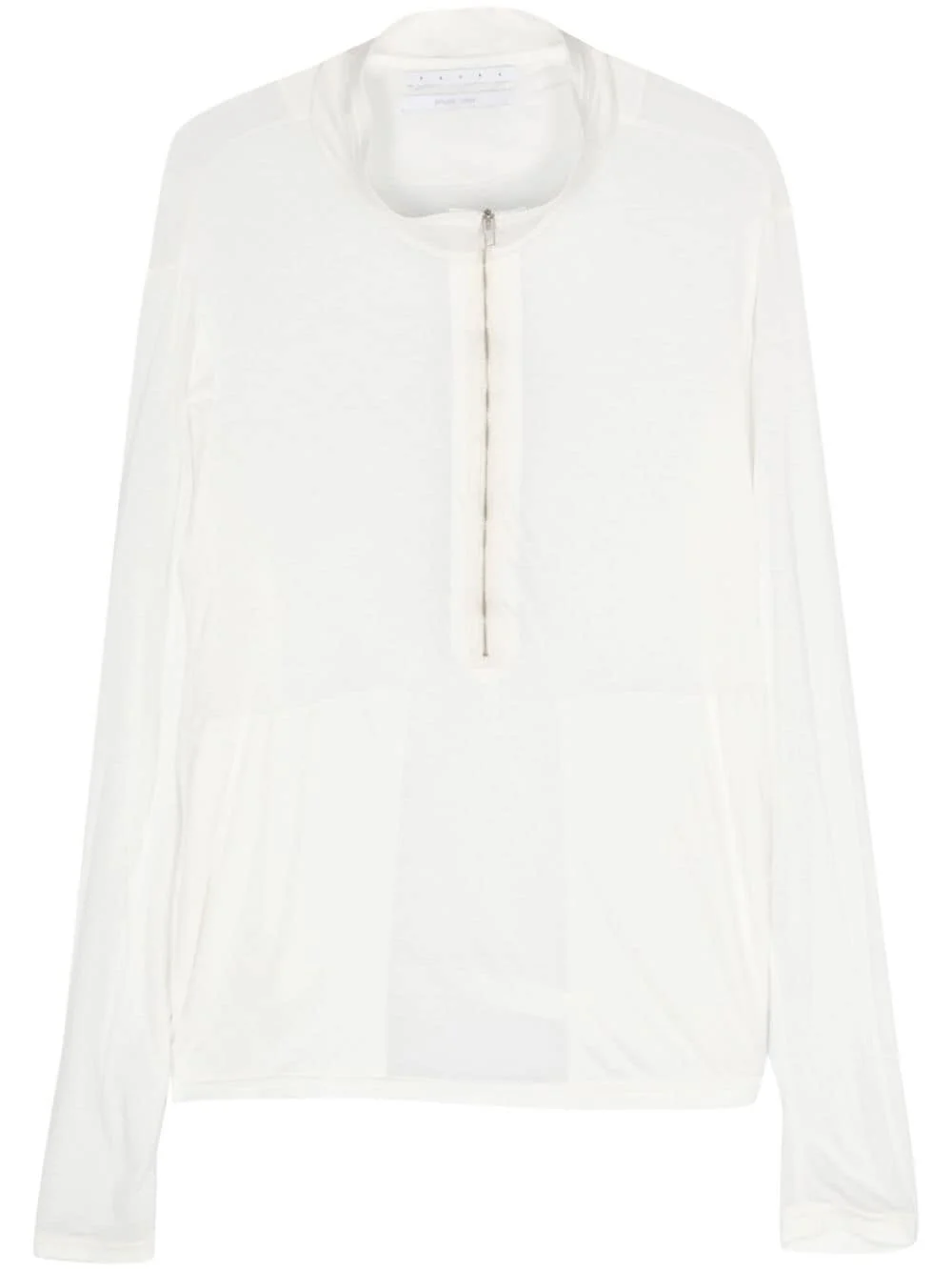 Sidur half-zip modal sweatshirt Highlights - Off-white - Modal - Semi-sheer construction - High neck - Long sleeves - Elasticated cuffs - Two side inset pockets - Elasticated hem - Half front zip fastening Made in Italy Composition Modal 100% SIZE & FIT FittingInformation Designed for a relaxed fit, this piece allows for comfort and movement when worn Made with a fine knit, this piece offers some stretch