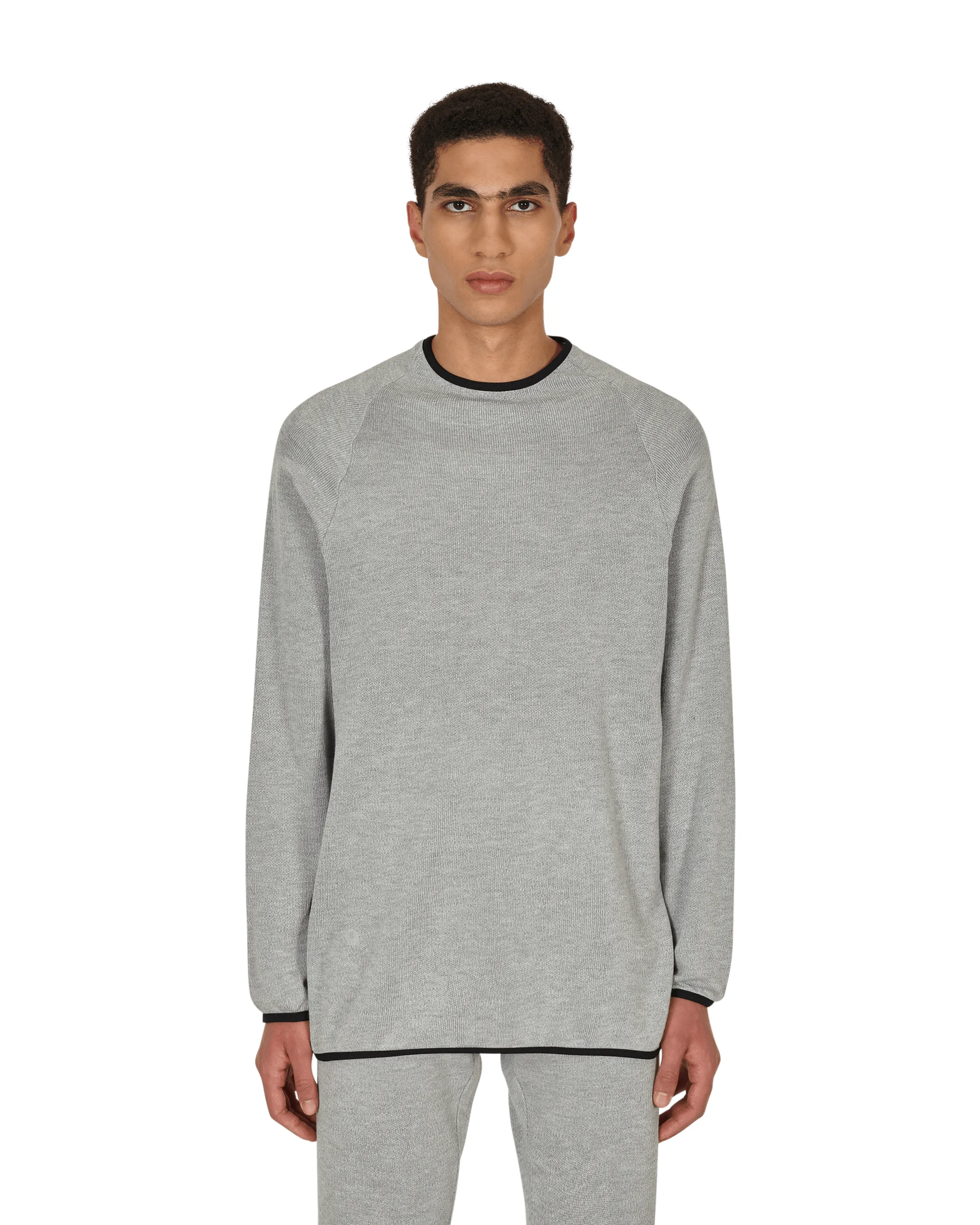 RANRA Knitted Underlayer Grey Knitwears Sweaters - 55% Cotton, 45% COOLMAX Polyester - COOLMAX® Fabric Technology - Raglan Sleeves - Elastic Trims - Made in England - Style Code: AMJKNITTEDUNDERTOP 001 SIZE & FIT Model is 6ft 1in/1.86m with 35"/90cm chest and wears size M. Measures (Size M): 55cm Chest, 84cm Sleeve, 77cm Length, 49cm Hem.