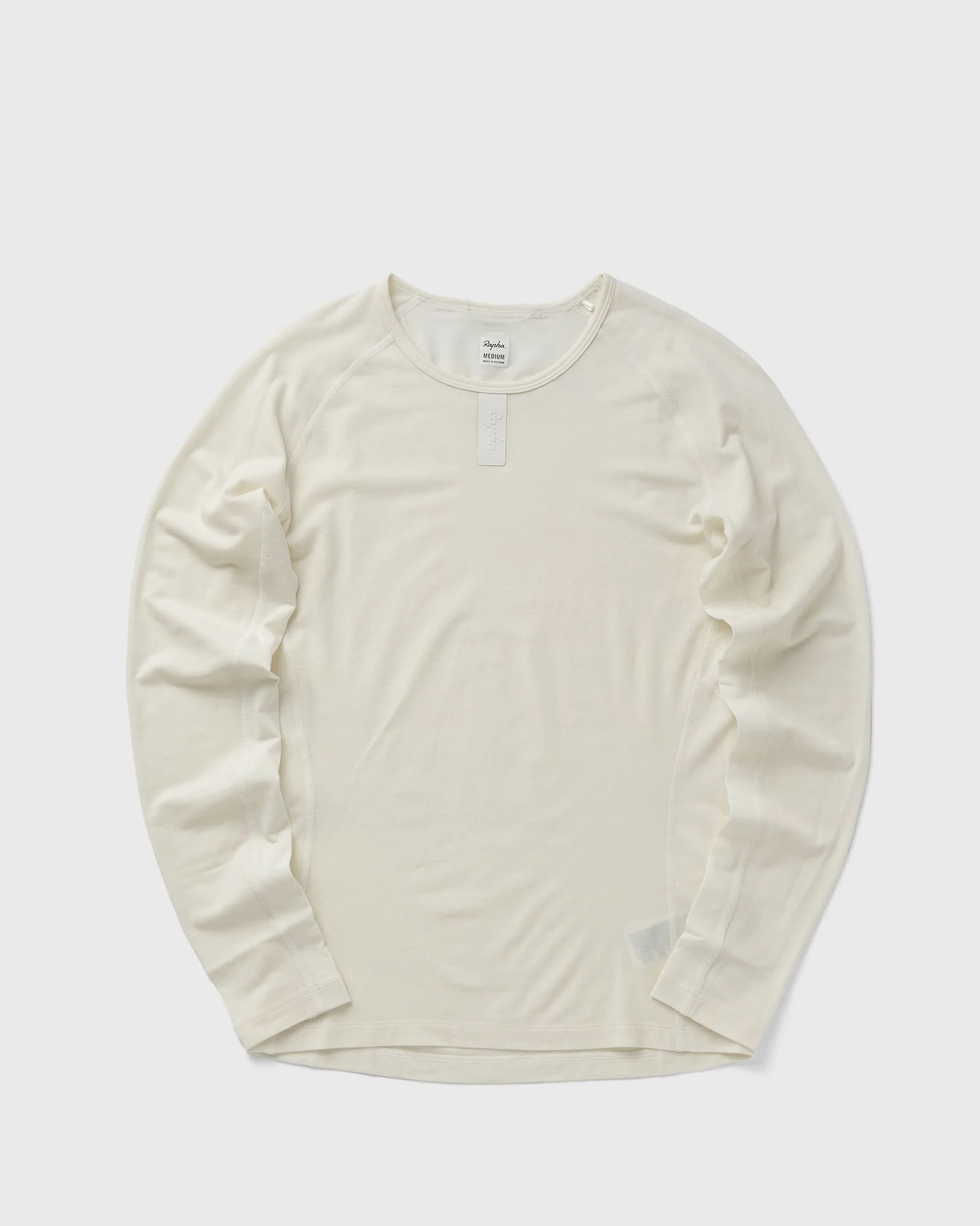 The Rapha Merino Base Layer - Long Sleeve is breathable, versatile and perfect for year-round use in a variety of weather conditions. - Made from an exclusive 160 g/m² merino blend fabric - the perfect balance of ventilation, warmth and comfort - Flatlock seams for a smooth shape and comfortable feel - Merino wool is naturally antibacterial, anti-scratch and anti-odour Article number: BMK01XX-PWA Gender: men Color: CREAM/WHITE Material: 74% Merino wool, 16% Nylon, 10% Spandex/elastane