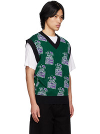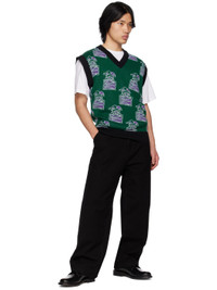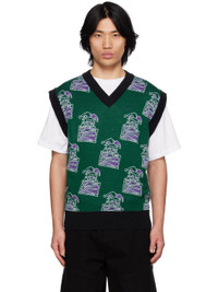 Knit wool and acrylic-blend vest. Jacquard graphic pattern throughout. · Rib knit V-neck, hem, and armscyes · Logo flag at side seam Supplier color: Green 50% wool, 50% acrylic. Made in Italy 231361M206000