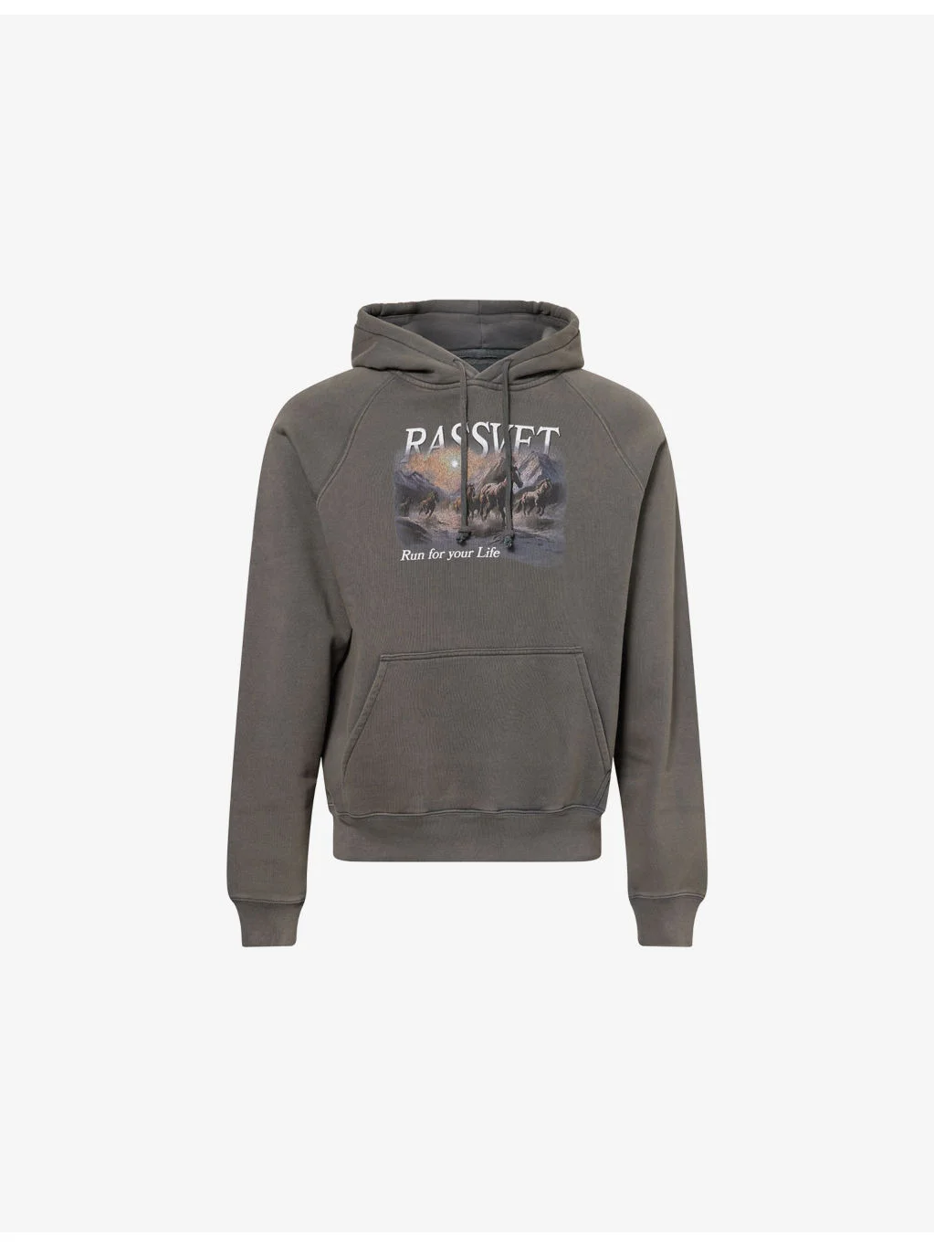 PRODUCT DETAILS - Rassvet cotton-blend hoody - 80% cotton, 20% polyester - Pulls on - Relaxed fit, hooded, long raglan sleeves, horses print at front, ribbed trims - Machine wash mild - Model is 6ft 2in/1.88m and wears a size medium - Midweight, slight stretch Ref: R04513387