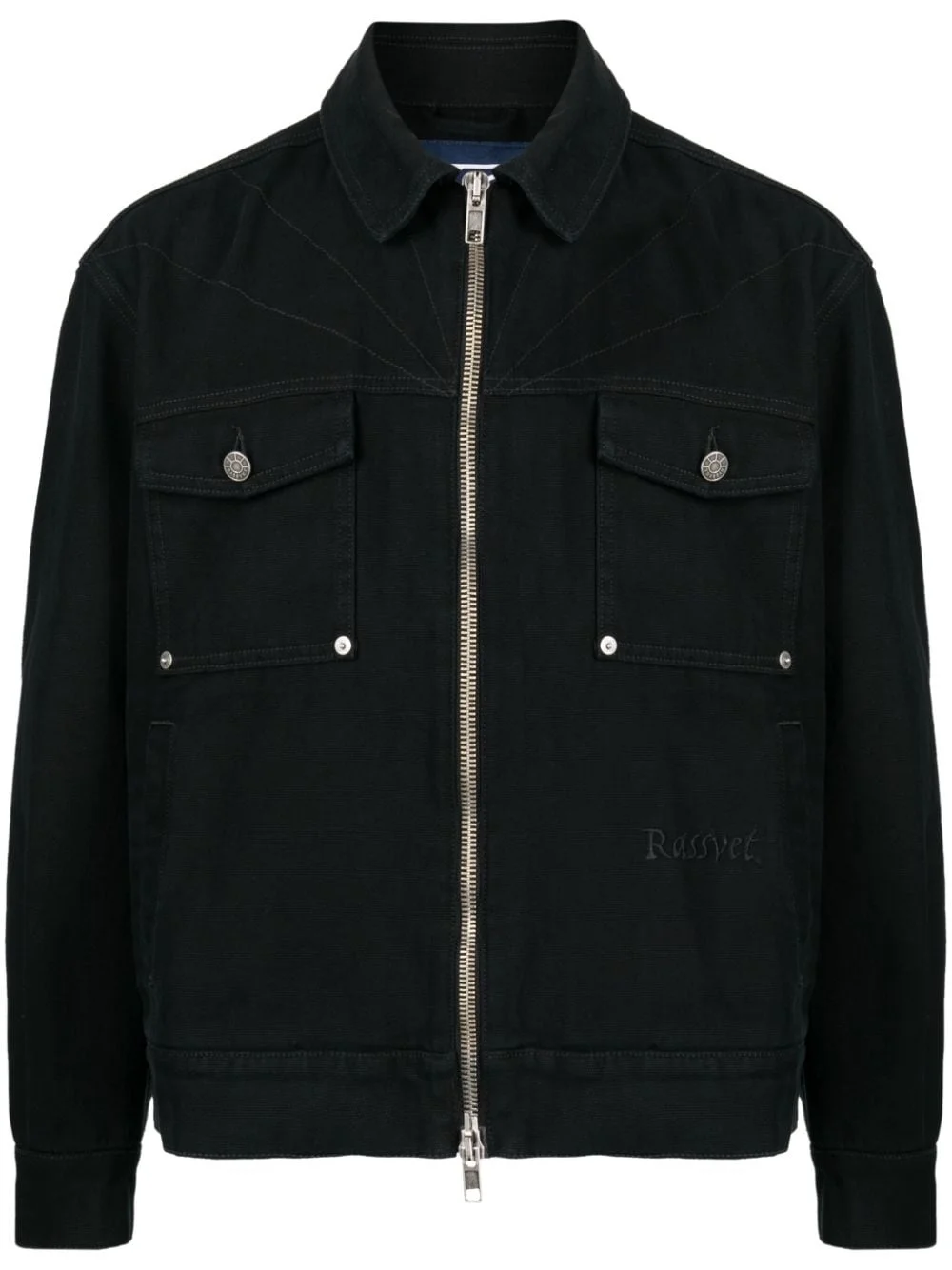 logo-embroidered cotton jacket Highlights - Black - Cotton - Denim - Embroidered logo to the front - Silver-tone stud detailing - Logo-embossed buttons - Classic collar - Front two-way zip fastening - Long sleeves - Buttoned cuffs - Two chest flap pockets - Two side slit pockets Made in Italy Composition Body: Cotton 100% SIZE & FIT Model measurements Height 6 ft 2 in(1.87 m) Bust/Chest 31.49 in(80 cm) Hips 37.79 in(96 cm) Waist 27.95 in(71 cm) FittingInformation Designed for a boxy fit, intended for a loose fit throughout Sturdy and hard-wearing, this denim piece offers no stretch This piece fits true to size – if you would prefer a looser fit to layer, take one size up Washing instructions Machine Wash