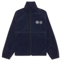 Established in 2016 PACCBET, which is pronounced Rassvet in English, was founded by Gosha Rubchinskiy and his friend pro-skater Tolia Titaev. The Paccbet clothing brand mixes jeans, pants, sweaters, and more streetwear silhouettes with subtle Soviet aesthetics; whether that be through Cyrillic script or graphic prints. ‘Paccbet’ means ‘dawn’ in Russian, reflecting Gosha’s mantra of finding the beauty in Russian culture, and bringing it to light. Pictured is the Rassvet Track Jacket in Navy. FINAL SALE ITEM. NOT ELIGIBLE FOR RETURNS/CANCELLATIONS. - Shell: 100% polyamide - Lining: 100% polyester - Printed branding - Full front zip closure - Packable hood - Elasticated cuffs - Back ventilation with velcro closure - Style no: PACC6J002-2