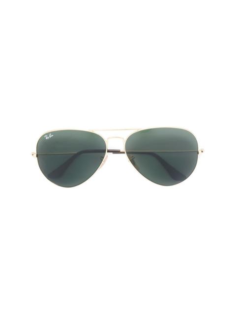 aviator frame sunglasses Gold-tone metal aviator frame sunglasses from Ray-Ban featuring tinted lenses, nose pads and straight arms with angled tips. This item comes with a protective case. Made in Italy Composition Outer: Metal 100% SIZE & FIT Measurement Arm Length 5.31 in(13.5 cm) Bridge Width 0.55 in(1.4 cm) Lens Diameter 2.28 in(5.8 cm)
