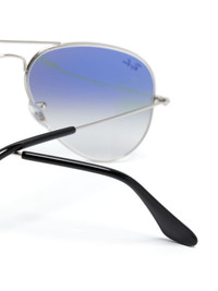 Aviator Large Metal sunglasses Highlights - Silver-tone - Metal/acetate - Signature ray-ban aviator frame - Gradient lenses - Nose pads - Straight arms - Curved tips - These glasses come with a protective case. Made in Italy Composition Acetate 100%, Metal 100% SIZE & FIT Measurement Arm Length 5.31 in(13.5 cm) Bridge Width 0.55 in(1.4 cm) Lens Diameter 2.28 in(5.8 cm) Total Width 5.51 in(14 cm)