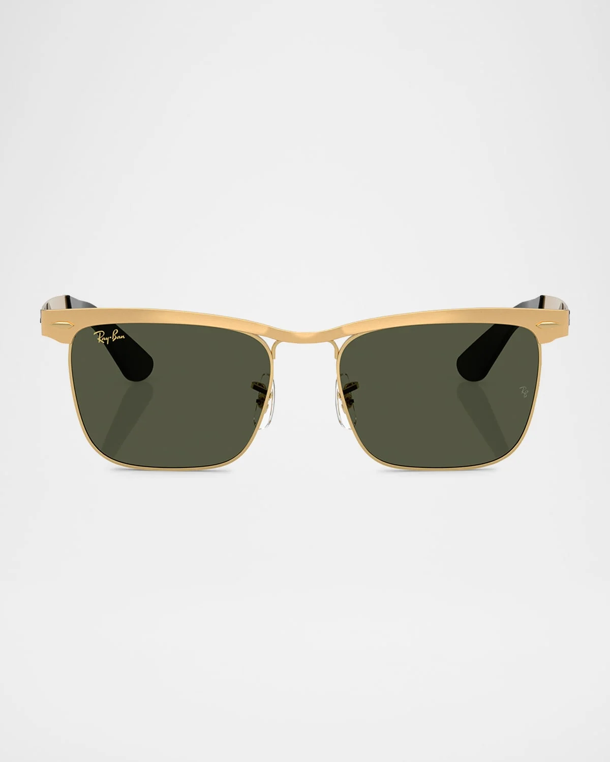- Ray-ban rb3875 sunglasses have a square shape. The standard lenses provide clarity and comfort for everyday wear. With their timeless design, these sunglasses are perfect for any occasion. Rb3875 features a sandblasted legend gold color on a square frame with green lenses. to protect your eyes from harmful uv rays, all ray-ban sunglasses offer 100% uva & uvb protection. each pair of ray-ban sunglasses come with a cleaning cloth and case to clean and protect your sunglasses from scratches and damage. - Ray-Ban "RB3875" square sunglasses in metal - Lens/bridge/temple (in mm): - 56-18-145 - Solid-color lenses with logo script - Adjustable nose bridge - Logo on the temples - Tapered arms - Curved, capped temple tips - Metal - Spot clean - 100% UVA/UVB protection - Made in Italy - Proposition 65 warning for California residents