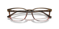 MODEL CODE RB5418F 8251 54-20 FRAME DESCRIPTION FRAME SHAPE Pillow FRAME COLOR Polished Striped Brown & Red FRAME MATERIAL Acetate TEMPLE COLOR Striped Brown & Red LENS INFORMATION LENS COLOR Clear TREATMENT Demo Lens PRODUCT DIMENSIONS HINGE TO HINGE 134 mm LENS HEIGHT 40.4 mm BRIDGE WIDTH 5420 mm TEMPLE LENGTH 150 mm FITTING FITTING Regular BRIDGE & NOSEPADS Low Bridge Fit