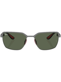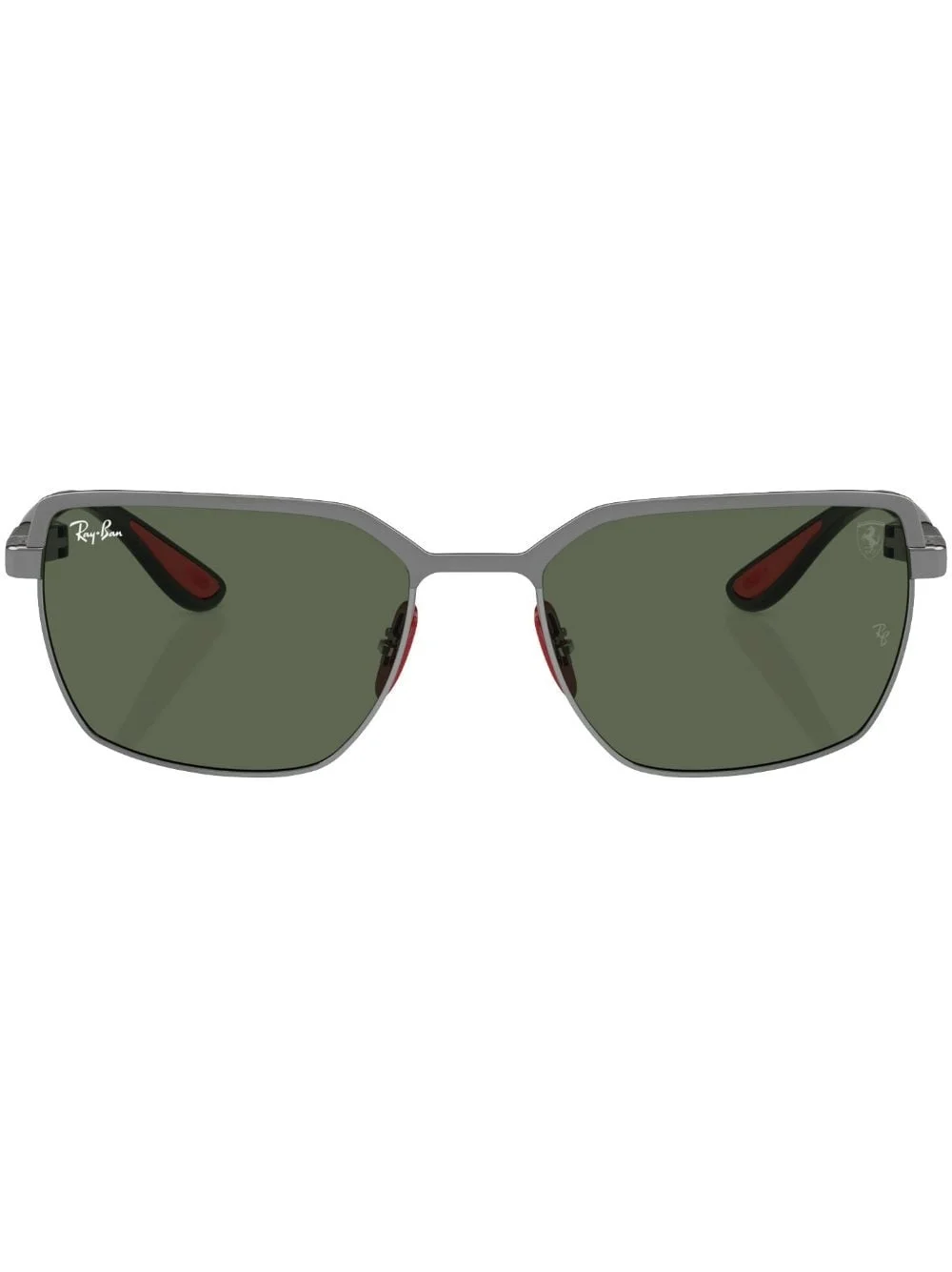square-frame sunglasses Highlights - Gunmetal grey/bright red - Steel - Square frame - Tinted lenses - Uv-protective lenses - Cut-out detailing - Nose pads - Straight arms - Curved tips - These glasses come with a protective case. Made in United States Composition Steel 100% SIZE & FIT Measurement Arm Length 5.7 in(14.5 cm) Bridge Width 0.74 in(1.9 cm) Lens Diameter 1.69 in(4.3 cm)